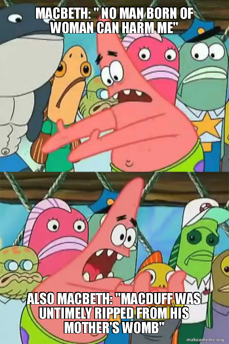 Macbeth No Man Born Of Woman Can Harm Me Also Macbeth Macduff Was Untimely Ripped From His Mother S Womb Push It Somewhere Else Patrick Make A Meme